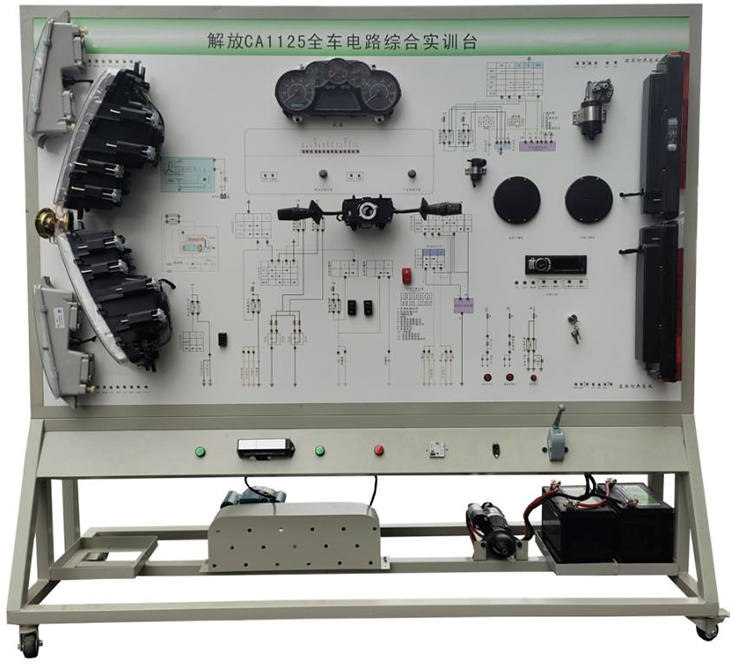 解放CA1125全車電路綜合實(shí)訓(xùn)設(shè)備采用解放CA1125J柴油機(jī)整車電器實(shí)物為基礎(chǔ),充分展示汽車儀表系統(tǒng)、燈光系統(tǒng)、雨刮系統(tǒng)、喇叭系統(tǒng)、發(fā)動(dòng)機(jī)電器系統(tǒng)、起動(dòng)系統(tǒng)和充電系統(tǒng)等汽車電器各系統(tǒng)的組成結(jié)構(gòu)和工作過程。