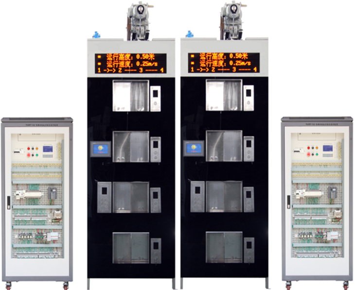 電梯控制技術(shù)綜合實訓(xùn)裝置,電梯模型,電梯教學(xué)設(shè)備是專門為職業(yè)院校開設(shè)的電氣自動化、機(jī)電一體化、機(jī)械制造與自動化等相關(guān)專業(yè)而研制的,裝置根據(jù)智能建筑中升降電梯的機(jī)構(gòu)按照一定的比例縮小設(shè)計,所用設(shè)備、器件與實際電梯基本一致,采用槽鋼方管框架結(jié)構(gòu)整體設(shè)計,正面使用透明有機(jī)玻璃面板,融低壓電氣、PLC、變頻調(diào)速、智能人機(jī)、傳感檢測、視頻監(jiān)控、智能考核系統(tǒng)等于一體,實現(xiàn)智能電梯復(fù)雜的開關(guān)量控制、時序邏輯控制。通過該裝置的操作訓(xùn)練可考核學(xué)生掌握智能電梯的裝調(diào)與維護(hù)綜合能力,如電梯呼梯盒的安裝、井道信息系統(tǒng)的安裝、平層開關(guān)檢測位置調(diào)整、門機(jī)機(jī)構(gòu)調(diào)整、電氣控制柜的器件安裝、接線、變頻器參數(shù)設(shè)置、PLC編程與調(diào)試、電梯群控功能調(diào)試、電梯故障排除、運行維護(hù)等,除了滿足專業(yè)實訓(xùn)教學(xué),還能開展技能考核。