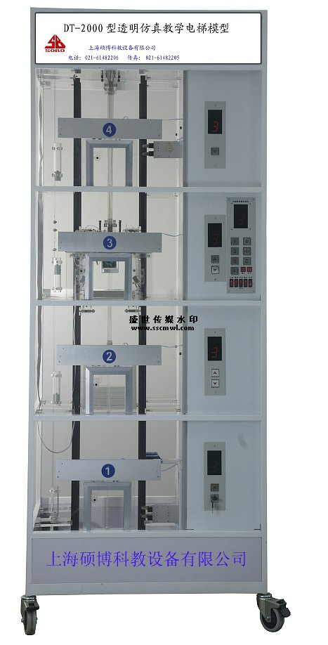 上海碩博公司的DT系列透明電梯是根據(jù)最常見的升降式電梯結(jié)構(gòu),采用鋼管焊接一體而成,表面經(jīng)過磷化噴塑處理、具有良好的結(jié)構(gòu)剛性。為了便于教學,電梯主要機構(gòu)部件均采用透明有機材料制成  (包括:限速器、轎廂、層門及門廳立面、轎門、轎廂、機房底板、導軌支架……)為了使電梯運行控制更加精密可靠逼真,設計了與實際電梯比例縮小的鋁合金轎廂對重導軌、及轎門門機導軌、層門導軌。