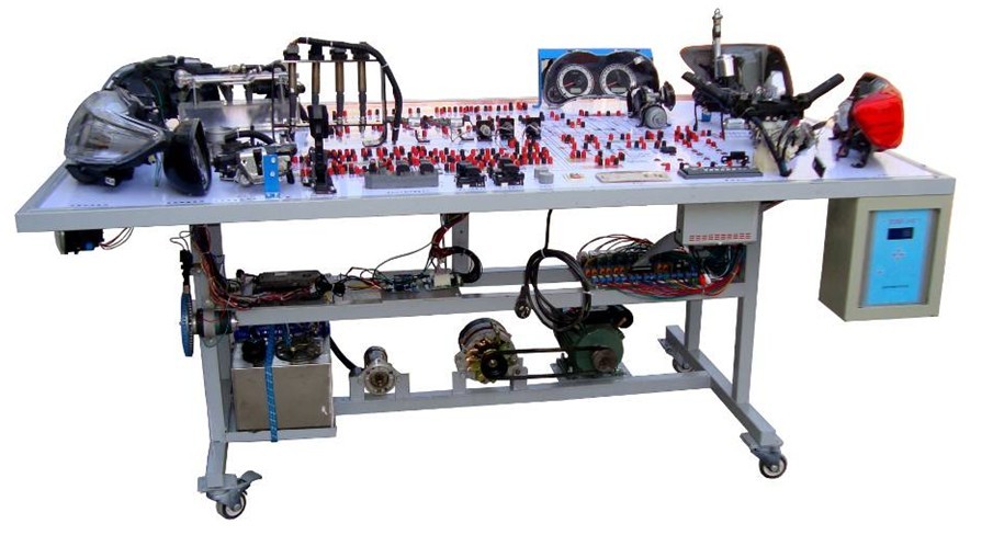 汽車(chē)電氣設(shè)備實(shí)訓(xùn)室。汽車(chē)電器設(shè)備實(shí)訓(xùn)室包含有汽車(chē)燈光系統(tǒng)、車(chē)載網(wǎng)絡(luò)系統(tǒng)、全車(chē)電器系統(tǒng)、汽車(chē)啟動(dòng)系統(tǒng)、汽車(chē)空調(diào)系統(tǒng)、全車(chē)線(xiàn)路試驗(yàn)臺(tái)、等實(shí)訓(xùn)教學(xué)設(shè)備。該實(shí)訓(xùn)室可以承擔(dān)《汽車(chē)構(gòu)造》、《汽車(chē)電器設(shè)備》、《汽車(chē)電控系統(tǒng)》、《汽車(chē)檢測(cè)與診斷》等課程的實(shí)踐教學(xué)任務(wù)?梢杂糜谘芯、分析全車(chē)電器系統(tǒng)、燈光系統(tǒng)、儀表系統(tǒng)等電器設(shè)備的電路及功能。利用這些系統(tǒng)進(jìn)行實(shí)踐教學(xué),使學(xué)生熟悉汽車(chē)電器的結(jié)構(gòu)和工作原理,掌握各個(gè)系統(tǒng)的基本組成電路,掌握主要電路的檢測(cè)方法和系統(tǒng)的故障特征,從而具有一定的檢測(cè)和調(diào)校能力。