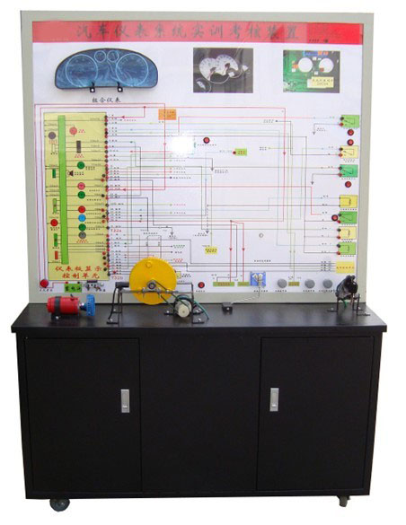 發(fā)動機電控單元、水溫傳感器、燃油傳感器、車速傳感器、曲軸傳感器及信號盤、儀表、檢測端子、故障設(shè)置系統(tǒng)、大容量蓄電池或12V開關(guān)電源、大型彩色噴繪電路原理圖、控制面板、可移動臺架、使用說明書及任務(wù)驅(qū)動式實訓(xùn)指導(dǎo)書等。