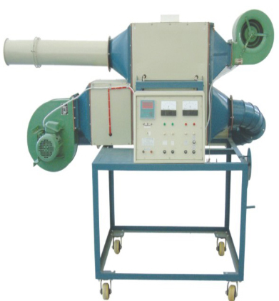 翅片管式熱管換熱器,加熱段循環(huán)加熱風(fēng)道,被加熱段加熱風(fēng)道,鼓風(fēng)機,風(fēng)機,笛形管流量計配差壓傳感器,加熱由固體調(diào)壓模塊無級調(diào)節(jié),信號輸入巡檢儀顯示溫度、壓差,電流表,電壓表,不銹鋼臺架及控制屏等。