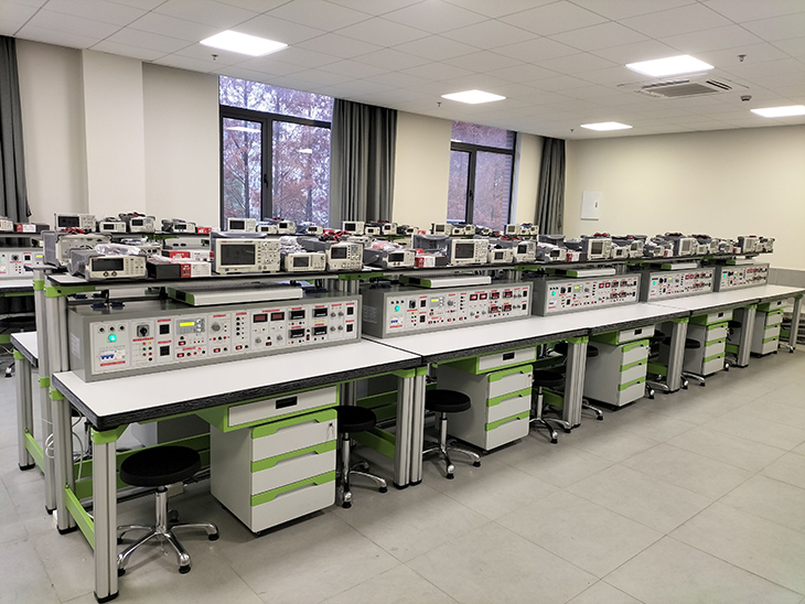 電工電子實(shí)訓(xùn)室設(shè)備通過課程實(shí)訓(xùn)主要培養(yǎng)學(xué)生電子電路的模擬搭建、測試、電子電路的設(shè)計(jì)、電工電路的搭接、測試及調(diào)試、電動機(jī)、變壓器的拆裝、檢修及控制能力,主要完成模擬電子電路分析與應(yīng)用、數(shù)字電子電路分析與應(yīng)用、電路與電工技術(shù)、電機(jī)拖動等課程實(shí)驗(yàn)實(shí)訓(xùn)使用,培養(yǎng)和提高實(shí)踐動手能力。電工電子技術(shù)實(shí)訓(xùn)室設(shè)備、機(jī)電一體化技術(shù)、電氣自動化技術(shù)、電梯工程技術(shù)、建筑電氣工程技術(shù)等專業(yè)實(shí)訓(xùn)《電路原理》、《電工技術(shù)》、《數(shù)字電路》等課程實(shí)驗(yàn)。實(shí)驗(yàn)臺采用碩博教儀的通用電工實(shí)驗(yàn)裝置,學(xué)生可以明顯直觀地了解線路結(jié)構(gòu)與實(shí)驗(yàn)原理。電工電子實(shí)驗(yàn)室教學(xué)目的是:使學(xué)生在電路基礎(chǔ)實(shí)驗(yàn)的基本知識、基本方法和基本技能方面受到較系統(tǒng)的教育與訓(xùn)練,加深與鞏固對電路的基本概念和規(guī)律的認(rèn)識,培養(yǎng)學(xué)生具有初步的實(shí)驗(yàn)?zāi)芰,良好的?shí)驗(yàn)習(xí)慣以及嚴(yán)謹(jǐn)?shù)目茖W(xué)態(tài)度與作風(fēng),為后續(xù)實(shí)驗(yàn)課程以及從事電路基礎(chǔ)方面的科研工作打好的基礎(chǔ)。上海碩博弘揚(yáng)大國工匠精神, 發(fā)展職業(yè)教育,應(yīng)用教學(xué)設(shè)備,為企業(yè)培養(yǎng)高技能人才,電工電子電機(jī)變壓器的基本理論,培養(yǎng)中職學(xué)生實(shí)作動手能力。體現(xiàn)”寬基礎(chǔ)、強(qiáng)技能”的人才培養(yǎng)理念,使理論講解與技能培養(yǎng)有機(jī)結(jié)合在一起,符合學(xué)生的認(rèn)知規(guī)律。可用作中等職業(yè)學(xué)校電工電子電氣技術(shù)實(shí)訓(xùn)設(shè)備。而專業(yè)生產(chǎn):高性能電工技術(shù)實(shí)訓(xùn)考核裝置、高性能電工電子/電力拖動/儀表照明/自動化綜合實(shí)訓(xùn)考核裝置、高性能電工·電子技術(shù)實(shí)訓(xùn)考核裝置、高性能電工·電子·電力拖動技術(shù)實(shí)訓(xùn)考核裝置、高性能電工電子電拖及自動化技術(shù)實(shí)訓(xùn)與考核裝置、高性能電工電子電拖及自動化技術(shù)實(shí)訓(xùn)與考核裝置、高級工電子技術(shù)實(shí)訓(xùn)考核裝置、技師電子技術(shù)實(shí)訓(xùn)考核裝置、高級技師電子技術(shù)實(shí)訓(xùn)考核裝置、技師、高級工電子技術(shù)實(shí)訓(xùn)考核裝置、電力電子高級技師實(shí)訓(xùn)考核裝置、電力電子技師實(shí)訓(xùn)考核裝置、電力電子高級工實(shí)訓(xùn)考核裝置(無自動設(shè)故功能)、高級電工實(shí)驗(yàn)室成套設(shè)備、高級模電、數(shù)電實(shí)驗(yàn)室成套設(shè)備、高級電工、模電、數(shù)電綜合實(shí)驗(yàn)室成套設(shè)備、高級電工、模電、數(shù)電、電力拖動實(shí)驗(yàn)室成套設(shè)備、高級電工、模電、數(shù)電、電力拖動(帶直流電機(jī))實(shí)驗(yàn)室成套設(shè)備、電力拖動(工廠電氣控制)實(shí)驗(yàn)裝置(帶直流電機(jī))、電工技術(shù)實(shí)驗(yàn)裝置、電工電子實(shí)驗(yàn)裝置、電工電子電力拖動實(shí)驗(yàn)裝置、電工電子電力拖動實(shí)驗(yàn)裝置(帶PLC實(shí)驗(yàn))、電工·電子·電力拖動·PLC·單片機(jī)綜合實(shí)驗(yàn)裝置、電工·電子·電力拖動·PLC·變頻調(diào)速綜合實(shí)驗(yàn)裝置、高級電工技術(shù)實(shí)驗(yàn)裝置、電工電子技術(shù)實(shí)驗(yàn)裝置、電工電子電力拖動實(shí)驗(yàn)裝置、現(xiàn)代電工技術(shù)實(shí)驗(yàn)裝置、現(xiàn)代電工電子技術(shù)實(shí)驗(yàn)裝置、電子學(xué)綜合實(shí)驗(yàn)裝置、模擬電子電路實(shí)驗(yàn)裝置、數(shù)字電路實(shí)驗(yàn)裝置、電機(jī)及電氣技術(shù)實(shí)驗(yàn)裝置、電機(jī)及電氣技術(shù)實(shí)驗(yàn)裝置、電力拖動·PLC·變頻調(diào)速技能實(shí)訓(xùn)裝置 、智能型電工/電子/電拖/PLC/單片機(jī)綜合實(shí)驗(yàn)裝置。