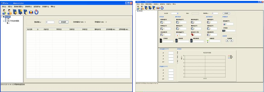 該項目主控系統(tǒng)采用國內知名廠商所生產的iTracer系列MPPT控制器,該控制器是一款基于多相位同步整流技術的高端產品,適用于離網型光伏系統(tǒng),控制器內建靈敏的最大功率點跟蹤算法,迅速并準確地找到光伏電池最大功率點以獲取更多的光伏能源,提高效率,降低系統(tǒng)成本。控制器通過配套USB通訊線可連接PC機監(jiān)控軟件,可實現(xiàn)單臺或多臺控制器的遠程實時監(jiān)控、參數修改、負載設置等光伏系統(tǒng)管理功能。