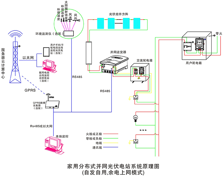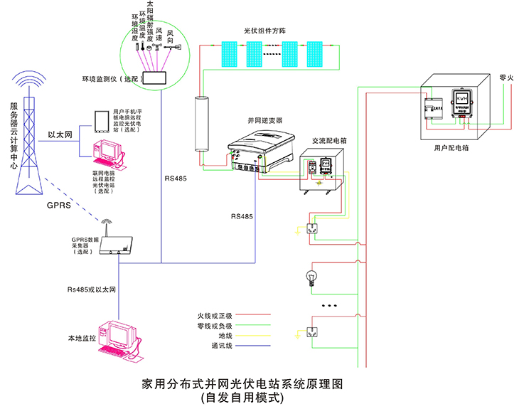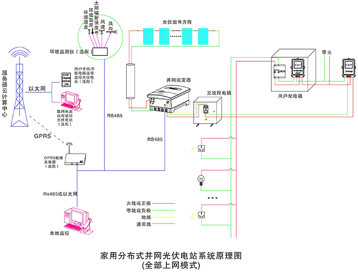 在晴朗的白天,裝在屋頂上的光伏組件發(fā)出的直流電經(jīng)過并網(wǎng)逆變器逆變成與電網(wǎng)同頻率同相位的單相交流電給負(fù)載進(jìn)行供電,在夜晚或陰雨天等太陽光照不足的情況下,系統(tǒng)處于待機(jī)狀態(tài),負(fù)載用電全部來自電網(wǎng)。您可以通過系統(tǒng)監(jiān)控軟件來實(shí)時(shí)查看系統(tǒng)的運(yùn)行狀態(tài)和故障信息,或者是選配遠(yuǎn)程通訊數(shù)據(jù)采集器,將系統(tǒng)工作數(shù)據(jù)通過GPRS或以太網(wǎng),傳輸?shù)侥氖謾C(jī)、平板電腦或任意一臺(tái)聯(lián)網(wǎng)的電腦,以便于您遠(yuǎn)程實(shí)時(shí)掌控電站的信息。