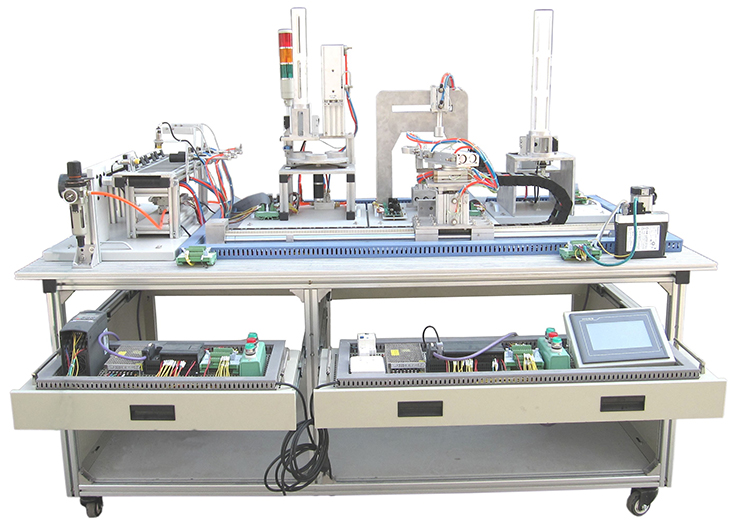 光機(jī)電氣一體化控制實(shí)訓(xùn)平臺(tái)由由鋁合金導(dǎo)軌式實(shí)訓(xùn)臺(tái)、典型的機(jī)電一體化設(shè)備的機(jī)械部件、PLC模塊、變頻器模塊、按鈕模塊、電源模塊、模擬生產(chǎn)設(shè)備實(shí)訓(xùn)模塊、接線端子排和各種傳感器、計(jì)算機(jī)等組成。整體結(jié)構(gòu)采用開(kāi)放式和拆裝式,實(shí)訓(xùn)裝置用于機(jī)械部件組裝,可根據(jù)現(xiàn)有的機(jī)械部件組裝生產(chǎn)設(shè)備,也可添加機(jī)械部件組裝其他生產(chǎn)設(shè)備,使整個(gè)裝置能夠靈活的按教學(xué)或競(jìng)賽要求組裝具有生產(chǎn)功能的機(jī)電一體化設(shè)備。模塊采用標(biāo)準(zhǔn)結(jié)構(gòu)和抽屜式模塊放置架,互換性強(qiáng);按具有生產(chǎn)性功能和整合學(xué)習(xí)功能的原則確定模塊內(nèi)容,使教學(xué)或競(jìng)賽時(shí)可方便的選擇需要的模塊。設(shè)備需完全符合電工電子全國(guó)職業(yè)技能大賽所要求,同時(shí)還要求具有可拓展功能,可以組成更加大型的生產(chǎn)模擬系統(tǒng),以配合各個(gè)用戶學(xué)校不同層次,不同專業(yè)的教學(xué)及培訓(xùn)要求。