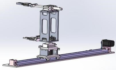 本站的功能是完成向各個(gè)工作單元輸送工件,系統(tǒng)分為雙機(jī)械手單元和直線位移位置精確控制單元兩部分,系統(tǒng)上電后,先執(zhí)行回原點(diǎn)操作,當(dāng)?shù)竭_(dá)原點(diǎn)位置后,若系統(tǒng)啟動(dòng),供料站物料臺(tái)檢測(cè)傳感器檢測(cè)到有工件時(shí),機(jī)械手整體先提升到位后手爪伸出到位后手爪夾緊,手爪夾緊到位手爪開(kāi)始縮會(huì)機(jī)械手整體下將到位后,伺服電機(jī)開(kāi)始工作按設(shè)定好的脈沖量到加工站。加工站到位后機(jī)械手整體提升,提升到位后手爪伸出伸出到位后機(jī)械手整體下降,下降到位后工件已放入加工站物料臺(tái)上,然后手爪松開(kāi),松開(kāi)到位后機(jī)械手回縮,等加工站加工完成后再將工件送到裝配站進(jìn)行大小料裝配,裝配完成后機(jī)械手抓取物料送到分揀站進(jìn)行分揀,這樣雙機(jī)械手的一個(gè)加工運(yùn)動(dòng)過(guò)程就完成了。只要料筒不缺料會(huì)持續(xù)以上過(guò)程。當(dāng)料筒出現(xiàn)缺料后,機(jī)器人會(huì)搬運(yùn)過(guò)來(lái)物料,機(jī)械手會(huì)運(yùn)行到取料位置抓取機(jī)器人上的小料,然后放入小料筒中,然后返回原點(diǎn),當(dāng)機(jī)器人再次搬運(yùn)過(guò)來(lái)物料,機(jī)械手會(huì)運(yùn)行到取料位置抓取機(jī)器人上的大料,然后放入大料筒中,這樣一個(gè)物料的拆分過(guò)程就完成了,直到把碼垛料臺(tái)上的物料全部拆分完成后為止。