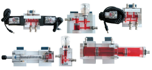 液壓綜合實驗臺透明液壓元件均采用進口透明有機玻璃材料由數(shù)控加工中心加工制作而成,可清晰直觀的觀察和了解到液壓元件的內(nèi)部結(jié)構(gòu)及液壓傳動回路的工作過程。
