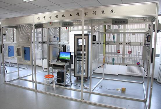 樓宇智能化工程實訓(xùn)系統(tǒng)在結(jié)構(gòu)上以智能建筑模型為基礎(chǔ),包含了智能大樓、智能小區(qū)、管理中心和樓道等典型結(jié)構(gòu),涵蓋了對講門禁、安防、視頻監(jiān)控、消防、綜合布線和DDC監(jiān)控照明六個系統(tǒng),各系統(tǒng)既可獨立運行,也可實現(xiàn)聯(lián)動。通過此系統(tǒng)進行項目訓(xùn)練,檢驗學(xué)生的團隊協(xié)作能力、計劃組織能力、樓宇設(shè)備安裝與調(diào)試能力、工程實施能力、職業(yè)素養(yǎng)和交流溝通能力等。