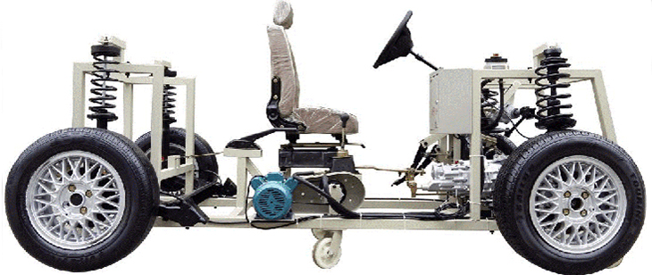 包括汽車前后懸掛系、轉(zhuǎn)向系、傳動系、手動變速器及掛檔機構(gòu)、制動系等系統(tǒng)、安裝腳輪的可移動式臺架等組成。