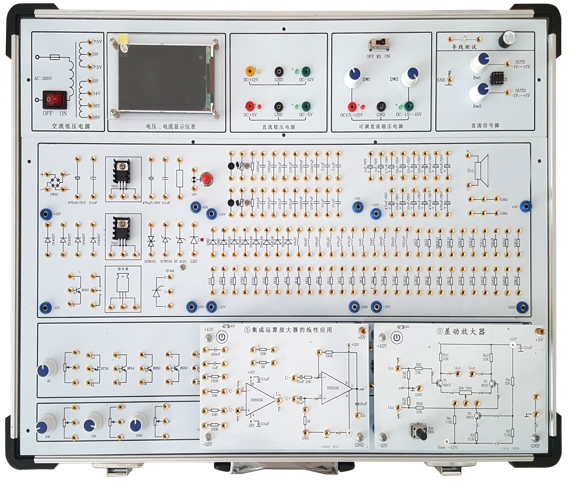 創(chuàng)新型模塊化模擬電路實驗箱由全鋁合金箱體、高性能線性電源和實驗電路板組成。其中實驗電路既可以采用固定功能模塊方式,也可以自行搭建實驗電路,電路原理和元器件符號清晰,實驗用元器件全部焊裝在線路板的反面,安全可靠,不易損壞。本實驗箱適用于本專院校所有電類和非電類專業(yè)《模擬電子技術(shù)》、《電子線路》等課程的實驗教學(xué)。