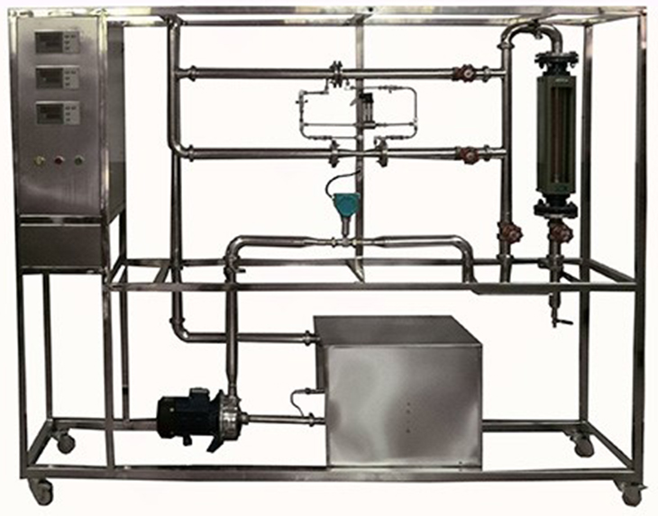水:裝置自帶不銹鋼水箱,連接自來水。實驗時經(jīng)離心泵進入測試管路,循環(huán)使用。