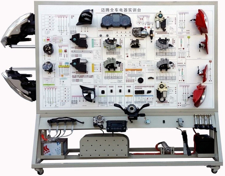 該設(shè)備采用全新邁騰B8L 2021款車身電器實(shí)物為基礎(chǔ),充分展示汽車儀表系統(tǒng)、燈光系統(tǒng)、雨刮系統(tǒng)、喇叭系統(tǒng)、電動車窗系統(tǒng)、電動門鎖、音響系統(tǒng)、起動系統(tǒng)和充電系統(tǒng)等汽車電器各系統(tǒng)的組成結(jié)構(gòu)和工作過程。