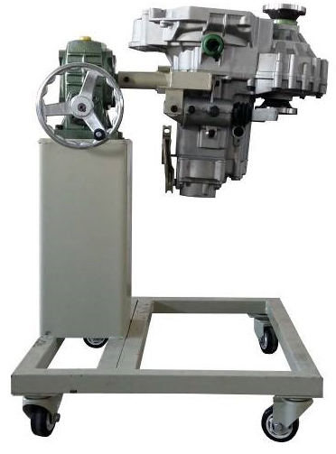 采用減速翻轉(zhuǎn)機(jī)構(gòu),可使變速器旋轉(zhuǎn)任意角度,并能任意位置鎖止,便于學(xué)生從不同的角度進(jìn)行拆卸和裝配。
