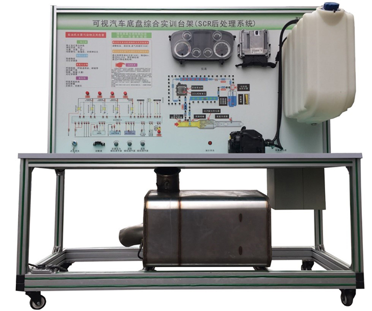 SCR后處理系統(tǒng)實(shí)驗(yàn)設(shè)備底座框架采用高強(qiáng)度鋁合金型材拼接而成,平臺(tái)面板采用4mm厚耐腐蝕、耐創(chuàng)擊、耐污染、防火、防潮的高級(jí)鋁塑板,表面經(jīng)特殊工藝噴涂底漆處理;面板打印有永不褪色的彩色電路圖,表面噴涂光油;學(xué)生可直觀對(duì)照電路圖,認(rèn)識(shí)和分析控制系統(tǒng)的工作原理;實(shí)訓(xùn)臺(tái)面板上安裝有檢測端子、可直接在面板上檢測電信號(hào),如電阻、電壓、電流等。
