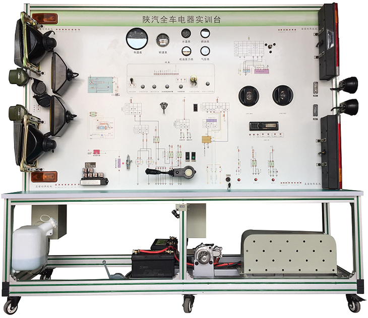 全車電路實訓臺、該設備采用陜汽SX2190柴油機整車電器實物為基礎,充分展示汽車儀表系統(tǒng)、燈光系統(tǒng)、雨刮系統(tǒng)、喇叭系統(tǒng)、發(fā)動機電器系統(tǒng)、起動系統(tǒng)和充電系統(tǒng)等汽車電器各系統(tǒng)的組成結構和工作過程。