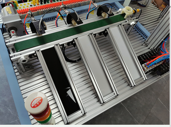 模塊、變頻器模塊、按鈕模塊、電源模塊、模擬生產設備實訓模塊(包含上料單元、皮帶輸送檢測單元、氣動機械手搬運單元、物料傳送倉儲單元)、觸摸屏、接線端子排和各種傳感器等組成。采用開放式和拆裝式結構,可根據現有的機械部件組裝生產設備,使整個裝置能夠靈活的按實訓教學或競賽要求組裝具有生產功能的光機電一體化設備。模塊采用工業(yè)標準結構及抽屜式模塊放置架,互換性強。
