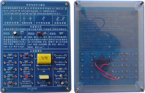 認(rèn)知檢測(cè)區(qū):提供色環(huán)電容、普通瓷片電容、高壓瓷片電容、滌綸電容、CBB電容、云母電容、直插式鉭電容、獨(dú)石電容、電解電容、微調(diào)電容、CBB61電機(jī)啟動(dòng)電容、CBB20軸向無感聚酯膜電容、安規(guī)電容等若干典型通用電容;同時(shí)還按照封裝提供06030805貼片電容、貼片鋁電解電容、貼片鉭電容等若干貼片電容。
