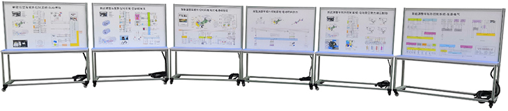 汽車(chē)檢測(cè)實(shí)訓(xùn)臺(tái)面板采用 ≥ 4mm 厚耐腐蝕、耐創(chuàng)擊、耐污染、防火、防潮的高級(jí)鋁塑板,表面經(jīng)特殊工藝噴涂底漆處理;面板打印有永不褪色的彩色電路圖;學(xué)員可直觀對(duì)照電路圖和原車(chē)實(shí)物,認(rèn)識(shí)和分析各控制系統(tǒng)的工作原理。