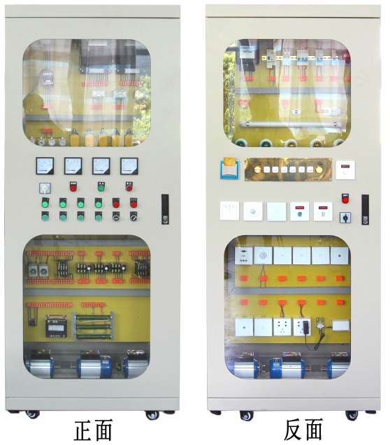 2、電氣柜體正面內(nèi)安裝賓館及公寓內(nèi)部單相電氣控制電路,主要包括賓館客房及公寓住宅全套單相電照明及電器插座模塊(含專用控制面板)同時還配備各種弱電信息模塊。學生通過各種不同的線路連接,既能進行一些諸如請勿打擾電路安裝等小課題的實訓,也能進行一些諸如客房全套電器安裝及故障設(shè)置和排除等綜合性課題的實訓。