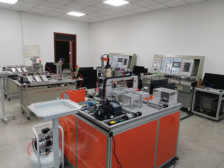 機(jī)電一體化實(shí)驗(yàn)實(shí)訓(xùn)裝置、PLC與自動(dòng)化實(shí)驗(yàn)實(shí)訓(xùn)室設(shè)備自動(dòng)化生產(chǎn)線實(shí)訓(xùn)室、氣動(dòng)控制實(shí)訓(xùn)室、伺服控制實(shí)訓(xùn)室、過程控制實(shí)訓(xùn)室、仿真控制實(shí)訓(xùn)室、自動(dòng)化創(chuàng)新工作室等;能提供可編程控制技術(shù)、交流伺服驅(qū)動(dòng)技術(shù)、人機(jī)界面技術(shù)、多自由度機(jī)械臂技術(shù)、網(wǎng)絡(luò)控制技術(shù)、自動(dòng)化物流管理、虛擬仿真等自動(dòng)化領(lǐng)域核心技術(shù)的實(shí)踐訓(xùn)練;教學(xué)項(xiàng)目涵蓋單項(xiàng)技能訓(xùn)練、綜合技能提升、創(chuàng)新設(shè)計(jì)能力培養(yǎng)、自動(dòng)化新技術(shù)應(yīng)用等多個(gè)層面,為滿足學(xué)生技能訓(xùn)練、教師實(shí)踐能力培養(yǎng)、企業(yè)員工培訓(xùn)、技術(shù)研發(fā)與服務(wù)提供了有力保障。機(jī)電一體化實(shí)驗(yàn)實(shí)訓(xùn)平臺(tái)、PLC與自動(dòng)化實(shí)訓(xùn)室設(shè)備是《PLC控制技術(shù)》、《變頻器控制技術(shù)》、《組態(tài)控制技術(shù)》等課程的教學(xué)實(shí)驗(yàn)實(shí)訓(xùn)、課程設(shè)計(jì)、自動(dòng)化綜合實(shí)訓(xùn)及創(chuàng)新設(shè)計(jì)等實(shí)踐基地,也是技能培訓(xùn)的教學(xué)平臺(tái)。滿足學(xué)生進(jìn)行PLC實(shí)訓(xùn)、課程設(shè)計(jì)、畢業(yè)設(shè)計(jì)等需求。機(jī)電一體化實(shí)驗(yàn)實(shí)訓(xùn)平臺(tái)、PLC與自動(dòng)化實(shí)訓(xùn)室設(shè)備主要功能是為學(xué)生提供可編程邏輯控制器(PLC)的相關(guān)實(shí)訓(xùn)與實(shí)訓(xùn)操作環(huán)境,幫助學(xué)生深入理解PLC的工作原理、編程方法、以及在工業(yè)自動(dòng)化領(lǐng)域的應(yīng)用。