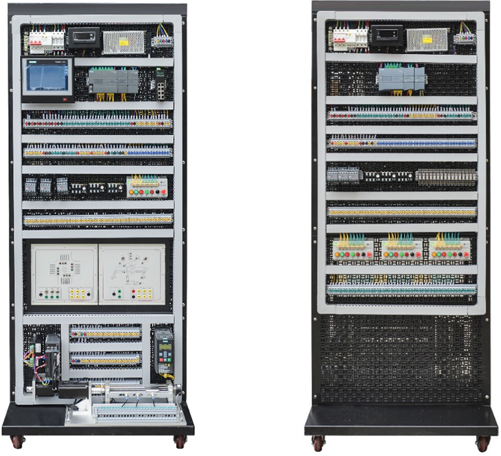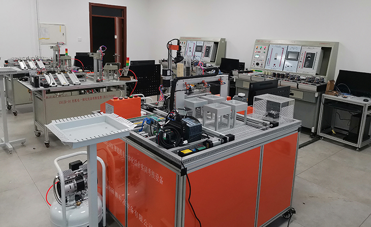PLC、西門(mén)子G120C變頻器、昆侖通態(tài)觸摸屏、步進(jìn)電機(jī)、伺服電機(jī)、傳感器等設(shè)備于一體的綜合性專(zhuān)業(yè)實(shí)訓(xùn)室。